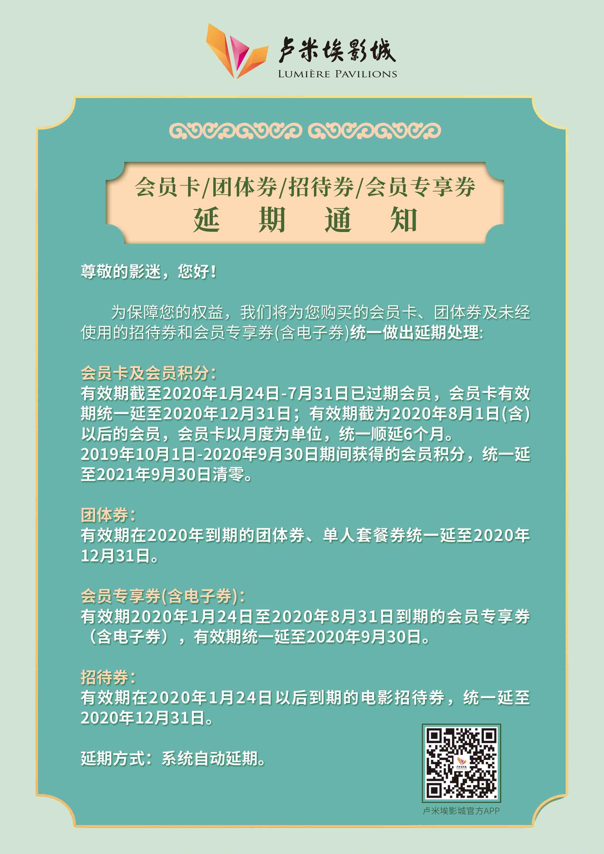 会员卡/会员积分/团体券/招待券/会员专享券延期通知